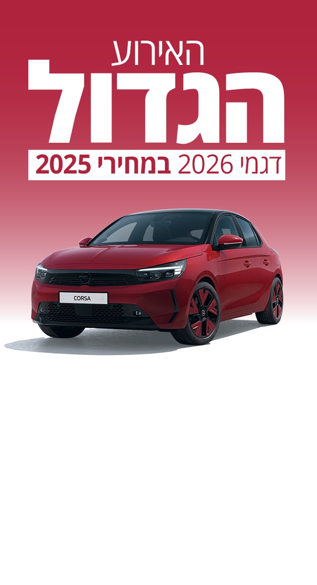 החל מ- 134,990 ש"ח להרכבת ה-CORSA שלך * ללא אגרת רישוי לשנה הראשונה בסך 1,707 ש"ח